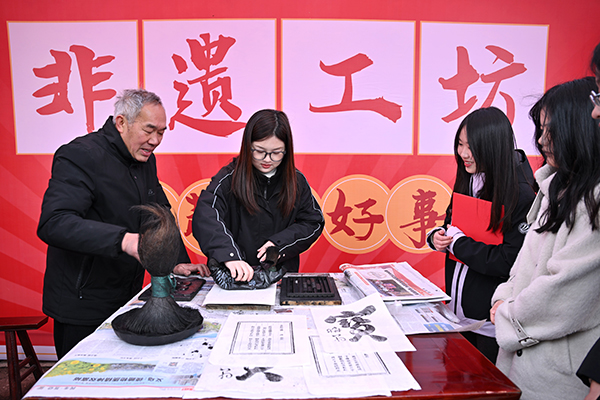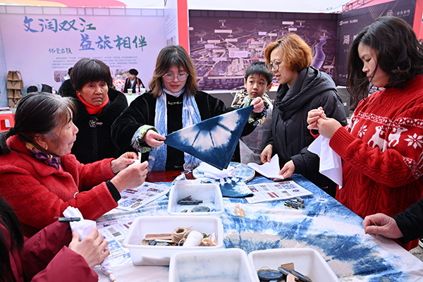 活動中,雙江湖集團開設的“非遺工坊”小課堂進古鎮(zhèn)互動活動最具亮點,木活字印刷、剪紙、扎染等一批省、市級非遺項目一一亮相,市民在互動體驗中感受到傳統(tǒng)文化傳承的獨特魅力。 (呂斌 攝)
