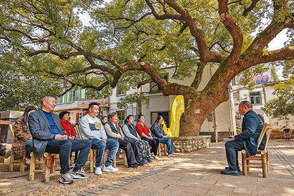 3月12日上午,剛剛參加完全國兩會的全國人大代表、李祖村黨支部書記方豪龍來到村里大樟樹下,第一時間為黨員干部、農(nóng)創(chuàng)客傳遞全國兩會好聲音,讓全國兩會精神在家鄉(xiāng)落地生根、開花結(jié)果。