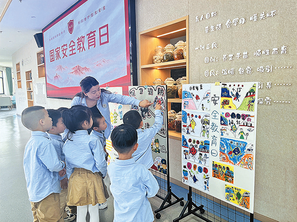 連日來,我市各中小學、幼兒園開展形式多樣的國家安全教育日宣傳教育活動,在師生心中播撒國家安全觀的種子。圖為上溪鎮(zhèn)第二幼兒園利用班級主題教育、電子滾動屏、海報展示等多種形式,引導學生樹立人人講安全、處處要安全的意識。(駱紅婷)