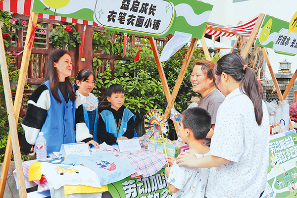 其間,“小掌柜”們與社工、志愿者合力布置攤點,各類衣物、文具商品琳瑯滿目。稚嫩且響亮的叫賣聲此起彼伏,引得過往行人駐足、購買。
