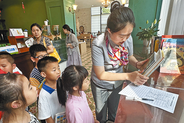 考慮到周末有不少家長帶著孩子來捐書,雪峰文學(xué)館進(jìn)一步擴(kuò)大兌換范圍,為不喝咖啡的孩子們準(zhǔn)備了酸梅湯、金銀花茶、文創(chuàng)書簽等獎勵。當(dāng)天,11個孩子在家長和班主任老師的帶領(lǐng)下走進(jìn)雪峰文學(xué)館,一共捐出62冊圖書。