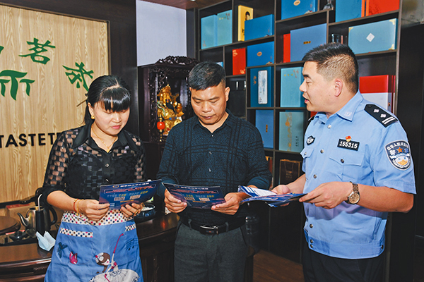 為持續(xù)構(gòu)建轄區(qū)“全民反詐”格局,最大限度減少電信網(wǎng)絡(luò)詐騙案件的發(fā)生,連日來,江東派出所民警深入轄區(qū)沿街商鋪開展防范電信詐騙宣傳。
