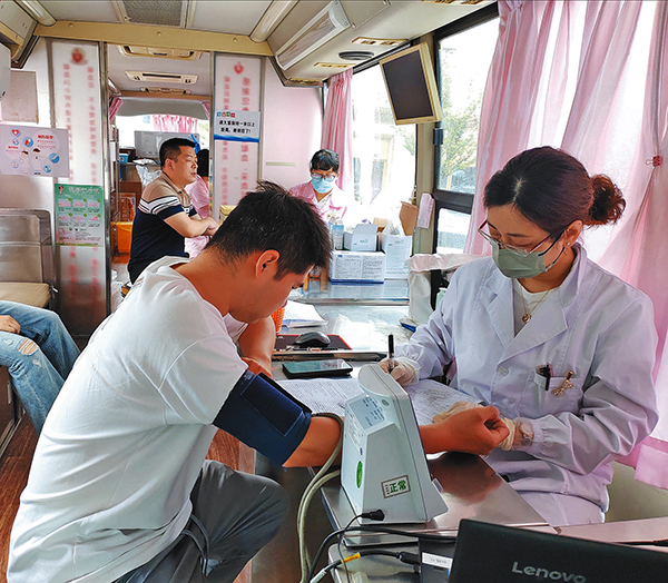 6月11日上午,稠城街道下車門社區(qū)聯(lián)合市中心血站,在稠州府小廣場組織開展無償獻血活動。在醫(yī)護人員和志愿者的引導(dǎo)下,現(xiàn)場居民有序排隊,踴躍參與無償獻血。(林曉燕)
