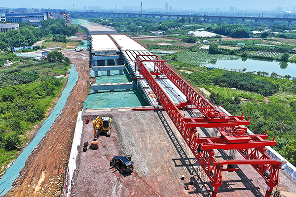 昨日,空中俯瞰正在建設(shè)中的G235義烏龍回至祥貝段改建工程一期,路基施工、橋梁梁板架設(shè)等建設(shè)穩(wěn)步推進(jìn)。截至目前,一期工程累計已完成總體的57%,橋梁下部結(jié)構(gòu)已全部完成。 G235義烏龍回至祥貝段改建工程為省重點工程,起點位于稠江街道龍回村附近,與G235龍回互通相接,由東向西南展線,終點位于上溪鎮(zhèn)祥貝村西北側(cè),主線全長9.217公里。道路設(shè)計雙向六車道一級公路標(biāo)準(zhǔn),兼顧城市道路功能,項目分二期實施。全媒體記者 呂斌 攝