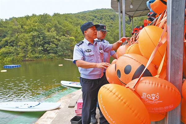 夏日炎炎,正值暑期高溫季節(jié),游泳人群增多,溺水事故進(jìn)入高發(fā)期。連日來(lái),市公安局江東派出所組織民輔警在青巖劉水庫(kù)進(jìn)行巡邏,積極開(kāi)展水域安全隱患排查、防溺水安全宣傳教育,從源頭上減少溺水事故的發(fā)生。(陳洋波)