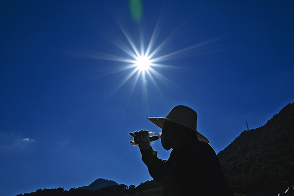 上午9點,烈日炙烤著大地,氣溫直逼40℃,而在塔山生活垃圾填埋場內,頭戴寬邊遮陽草帽、身著厚重工作服的操作工們,已在“垃圾山”上揮汗如雨地忙碌了3個小時。為了避開高溫時段和太陽的暴曬,覆膜工作比以往提前了兩個小時。
