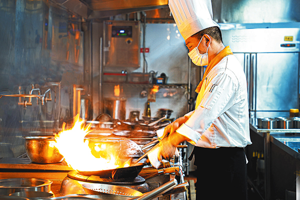 長時間忍受著灶臺的烘烤,高標(biāo)準嚴要求地烹飪菜肴,練就了他們一身不怕“烤”驗的真功夫……如此“熱”愛的背后,是對這份職業(yè)的敬畏與責(zé)任。因為有廚師堅守著廚房里的“人間煙火”,大家才能在盛夏里放心享受美味佳肴。這一份高溫下的堅守,值得尊敬。(華青)