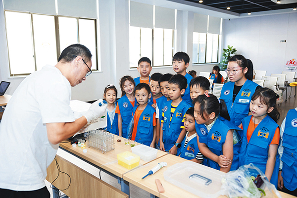 孩子們觀摩食品檢測(cè)實(shí)驗(yàn)