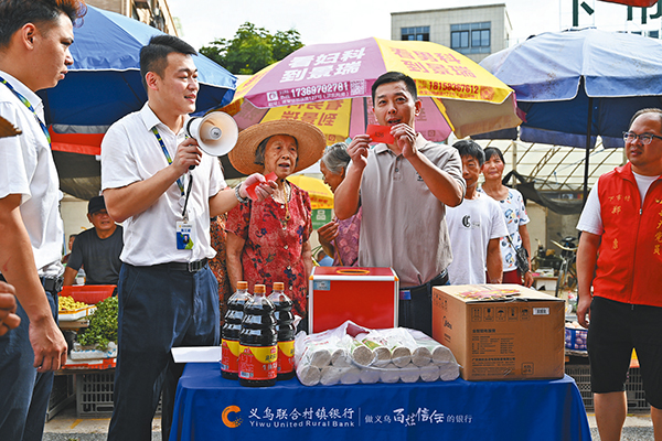 據(jù)義烏聯(lián)合村鎮(zhèn)銀行佛堂支行行長(zhǎng)張健超介紹,自去年4月開(kāi)始,每周二、四、六的早上7點(diǎn)到9點(diǎn),志愿者們都會(huì)在愛(ài)心服務(wù)亭,為菜農(nóng)和顧客提供免費(fèi)充電、免費(fèi)茶水、血壓測(cè)量以及零錢(qián)兌換、假幣識(shí)別、金融咨詢(xún)、反詐宣傳等便民服務(wù)。