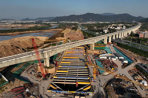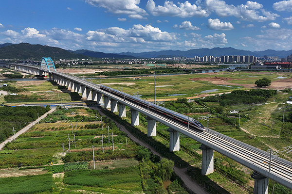 (1)2024年9月,雙江水利樞紐,一復興號列車快速行駛在杭溫高鐵義烏特大橋上。杭溫高鐵正式通車,意味著雙江水利樞紐建設迎來重要時刻。