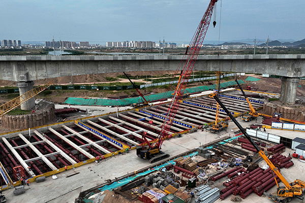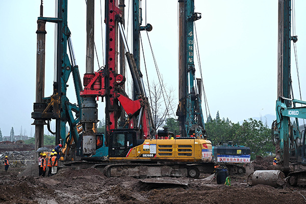 (9)2023年5月,雙江湖涉杭溫高鐵下穿隧道工程開始基坑圍護樁鉆進施工。