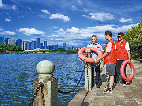 9月18日下午,市公安局江東派出所民警聯(lián)合社區(qū)志愿者,前往轄區(qū)的江邊、水庫檢查防溺水救生設(shè)備,對老舊的救生設(shè)備進(jìn)行更換,以確保設(shè)備在緊急情況下能用、好用。(陳洋波)