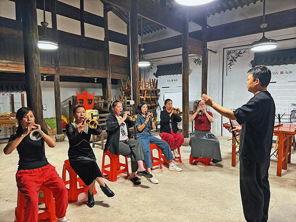現(xiàn)就職于浙江婺劇藝術(shù)研究院的賴馬杰,是國家二級演奏員、浙江戲劇家協(xié)會會員,曾多次隨團(tuán)出訪德國、巴西、新加坡等國家進(jìn)行演出交流。自今年7月來到江灣村后,他通過問卷調(diào)查了解村民的文化需求,并利用自身專業(yè)優(yōu)勢,邀請浙江婺劇藝術(shù)研究院的同事一同進(jìn)村開展培訓(xùn),聯(lián)合稠江街道教育服務(wù)中心組建了一支由老師、企業(yè)主、村民等組成的30余人的演出隊伍。同時,在村里辦起了器樂培訓(xùn)班,吸引60余名村民參與,不少鄰村村民也慕名前來求學(xué)。依托江灣村的歷史文化背景,賴馬杰定期舉辦“婺韻曲江”系列展演活動,確保每周都有精彩節(jié)目,每月都有大型演出,涵蓋音樂會、曲藝、器樂和婺劇等多種形式。