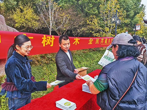 “古樹名木的根系深扎于土地,對土壤的穩(wěn)固、水源的涵養(yǎng)有著至關(guān)重要的作用,更是生物多樣性的重要支撐?!笔凶匀毁Y源和規(guī)劃局工作人員積極向市民分發(fā)宣傳手冊,以專業(yè)且耐心的態(tài)度,向過往市民講解保護(hù)古樹名木的方法和意義。