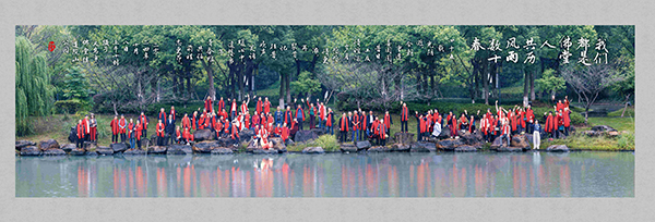 影像展中,一幅特別大的攝影作品吸引了不少觀展者的目光。這是2024年10月8日攝影師在佛堂鎮(zhèn)道院山的紀(jì)念義烏皮件廠員工45周年大合影。