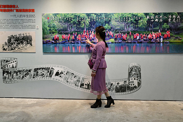 看展當(dāng)天,寧鐵英專(zhuān)程從城里趕來(lái),還為此精心化了個(gè)妝?!案贻p時(shí)候的自己比上一比,如今的我多了些歲月的痕跡,少了點(diǎn)當(dāng)初的意氣風(fēng)發(fā)?!睂庤F英指著一張照片笑著說(shuō),這是金福根老師前段時(shí)間在潘園門(mén)口幫她拍的,與自己年幼時(shí)候以及年輕時(shí)候的照片放在一起展出,她不得不感慨時(shí)間的力量。她也覺(jué)得,這次影像展特別有意義。