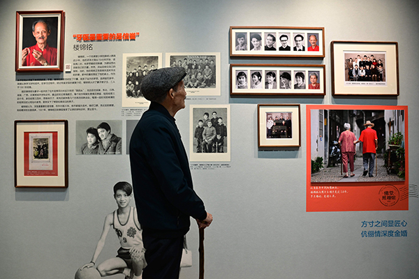 開(kāi)展當(dāng)天,多名“影中人”齊聚慢門(mén)攝影驛站,共同見(jiàn)證這場(chǎng)頗有意義的展覽,并與“曾經(jīng)的自己”合影。今年86歲的樓錦銘,早早地來(lái)到慢門(mén)攝影驛站?!斑@張是我年輕時(shí)候打籃球的照片,這張是我們一家人合影的照片。”樓錦銘一邊看著影像中的自己,一邊介紹,別看照片里他的姐妹們都是小孩,其實(shí)他家大妹今年已經(jīng)73歲了,老四也已有70歲了。