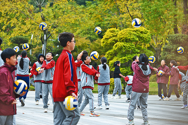 11月19日,義烏市藝術(shù)學(xué)校操場(chǎng),學(xué)生們?cè)诖笳n間歡快地進(jìn)行排球、跳繩等體育鍛煉,校園里充盈著濃厚的運(yùn)動(dòng)氛圍。(呂斌)