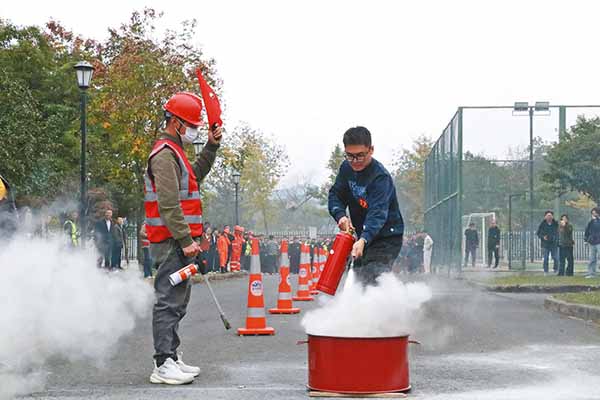 在消防知識競賽中,參賽人員通過筆試圍繞火災(zāi)種類判別、火情識別、消防器材正確使用等基礎(chǔ)消防知識展開激烈角逐。在滅火器實操比武中,參賽選手分工明確,配合默契,沉著應(yīng)賽,規(guī)范操作,充分展示了過硬的消防技能和良好的競技水平。(傅柏琳)