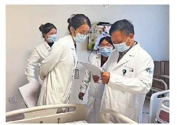 王吉如(右一)帶領(lǐng)科室年輕醫(yī)生查房。