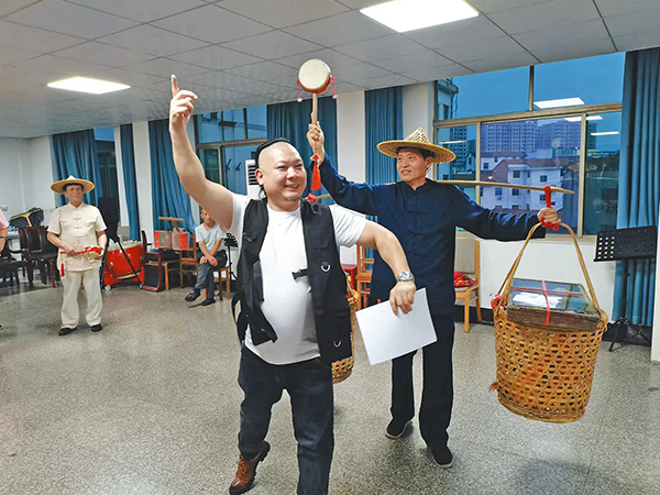 11月9日晚,已是婺劇小戲《老街手藝人》排練的第二課時,我?guī)е匦录糨嫼玫呐錁穪淼截ト锢夏甏髮W(xué)排練廳。根據(jù)各手藝人的特點(diǎn),這次需要在上周排練的基礎(chǔ)上重點(diǎn)進(jìn)行個性化指導(dǎo),對演員表演中存在的不足和不妥之處,予以糾正示范指導(dǎo)。當(dāng)晚7點(diǎn),我走進(jìn)排練場,演員們已經(jīng)在退休教師虞修苞的帶領(lǐng)下開始復(fù)習(xí)排練上周的教學(xué)內(nèi)容。見此情景,我對廿三里文藝工作嚴(yán)謹(jǐn)?shù)慕M織管理深感佩服,被基層文藝愛好者虛心好學(xué)、認(rèn)真求學(xué)的態(tài)度而感動。因而我也對做好這份工作增強(qiáng)了信心,更加努力地去指導(dǎo)他們。