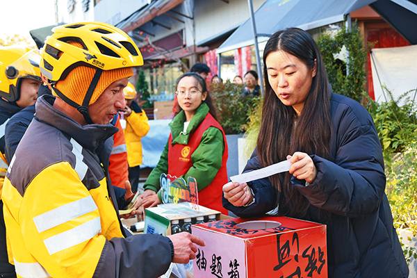 為給新業(yè)態(tài)人群送去冬日的溫暖,銀苑社區(qū)聯(lián)合轄區(qū)多方力量,在社區(qū)愛心驛站的“愛心茶攤”開展送溫暖活動,為他們送上紅糖姜茶、熱餃子、糕點等暖心又暖胃的美食,并提供微波加熱、休息、充電等服務(wù)。(龔盈盈)