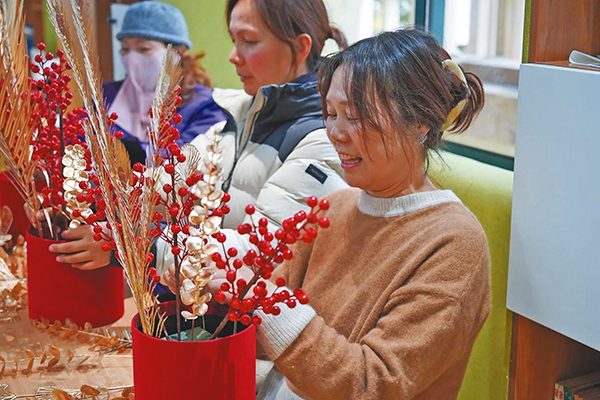 居民學習制作年宵花抱抱桶
