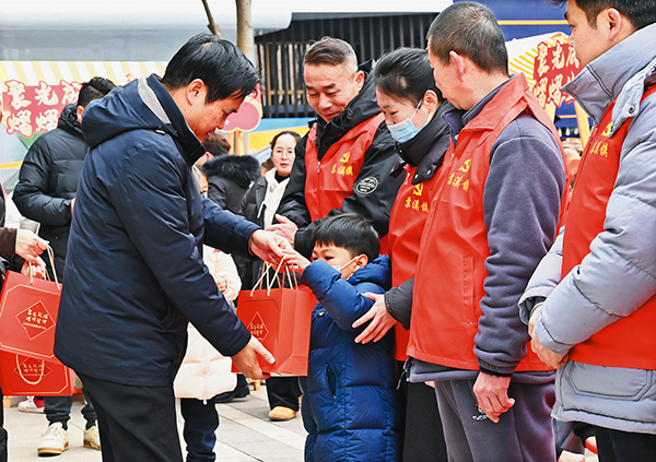 捏面人、糖畫(huà)、拓印體驗(yàn)……在棒杰針織分會(huì)場(chǎng),企業(yè)職工或駐足欣賞手工藝人的匠心獨(dú)運(yùn),或品嘗地道的美食小吃,臉上洋溢著滿(mǎn)足與幸福的笑容。更有不少家長(zhǎng)帶著孩子一同參與,讓孩子們?cè)谮s集中體驗(yàn)非遺的魅力,感受其中的和諧與溫暖。不僅如此,市集還特別設(shè)置了政策宣講、平安宣傳等多項(xiàng)便民服務(wù)攤位,進(jìn)一步增強(qiáng)群眾的文明意識(shí)和安全意識(shí)?;顒?dòng)現(xiàn)場(chǎng)還開(kāi)展剪紙制作、年畫(huà)拓印、送“?!睂?duì)聯(lián)等春節(jié)體驗(yàn)活動(dòng)。據(jù)統(tǒng)計(jì),“暖流”共富市集開(kāi)市當(dāng)天,累計(jì)人流量突破8000人,實(shí)現(xiàn)收入7.4萬(wàn)元。高流量的數(shù)據(jù)背后,是蘇溪鎮(zhèn)、尚湖鎮(zhèn)緊扣“共同富?!?,積極打造特色共富市集品牌的一個(gè)縮影。