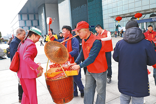 “這次我們還特別設(shè)置了臨時流動救助點(diǎn),為需要幫助的乘客提供即時幫扶?!笔忻裾窒嚓P(guān)負(fù)責(zé)人說,每一年,近百萬旅客在義烏站踏上回家路。在這個特殊的節(jié)點(diǎn),志愿者勇?lián)?zé)任,用熱情和行動為旅客們提供貼心周到的服務(wù),讓大家的“回家路”更加順暢。(華青)