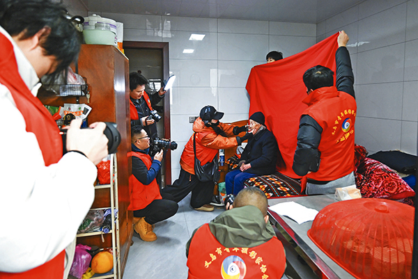 義烏市青年攝影家協(xié)會志愿者為行動不便的老年人提供上門拍照服務(wù)。