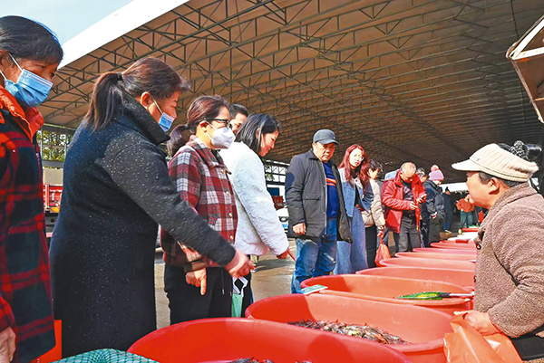 年年有“魚”。1月22日,市民在浙中農(nóng)副產(chǎn)品物流中心年貨集市買魚。