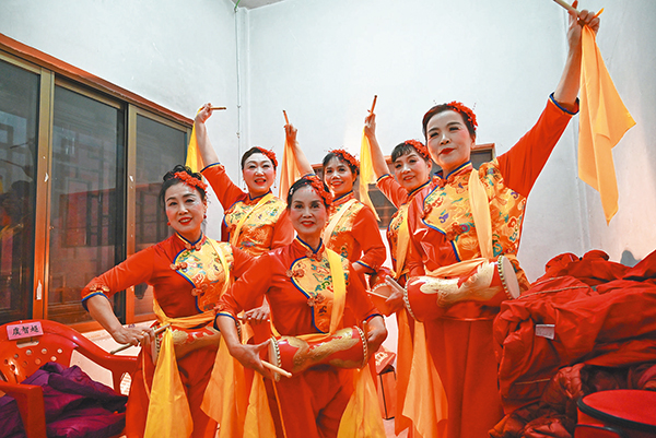 1月21日,廿三里街道華溪村村晚表演者后臺合影留念。