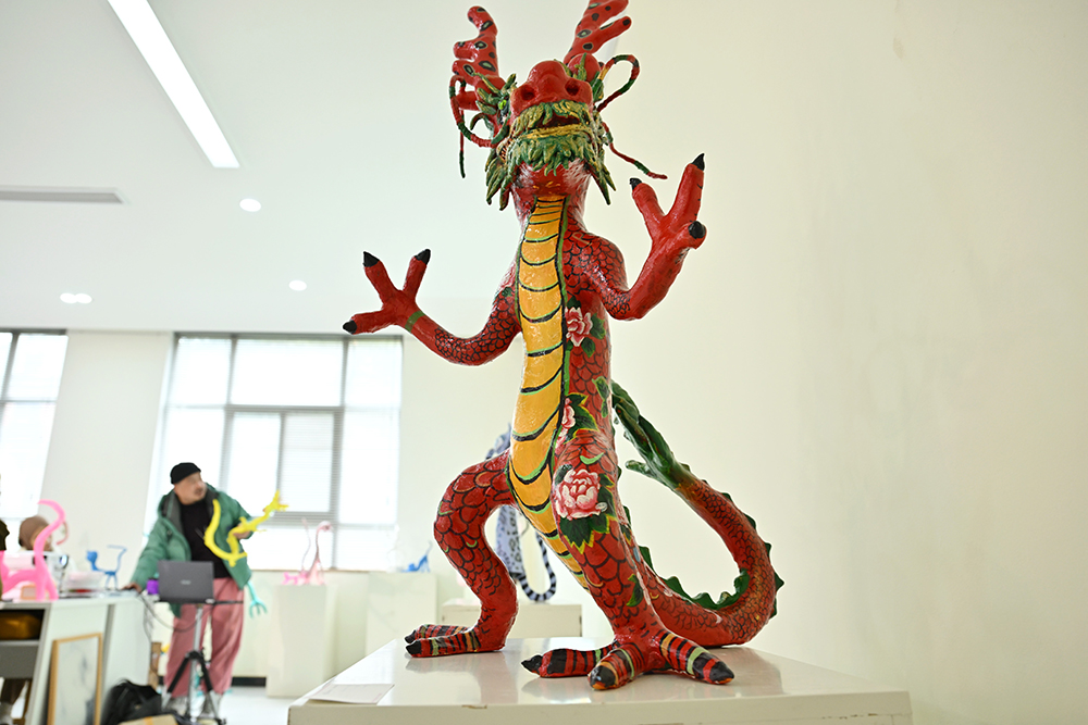 邵永紅介紹,隨著全球環(huán)境問題的日益嚴(yán)峻,環(huán)保主題在藝術(shù)設(shè)計(jì)領(lǐng)域的應(yīng)用越來越廣泛。藝術(shù)作品作為傳播環(huán)保理念的重要媒介,能夠有效提高公眾的環(huán)保意識(shí)。用生活中的環(huán)保材料,通過藝術(shù)加工塑造成耳目一新的一組組雕塑作品,引發(fā)觀眾的思考和討論。(全媒體記者 呂斌 攝)