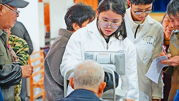 城鎮(zhèn)職校學(xué)生為村民驗(yàn)光配鏡