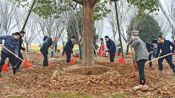 今年是開展全民義務(wù)植樹運動44周年。在第47個中國植樹節(jié)到來之際,昨日上午,金華市委常委、義烏市委書記葉幫銳,金華市副市長、義烏市市長溫建飛,市人大常委會主任丁政,市政協(xié)主席陳小忠等市領(lǐng)導(dǎo)一起參加義務(wù)植樹活動。與各民族同胞代表、國際友人代表、市直機關(guān)干部職工代表等,共植同心林、齊種友誼樹,以實際行動踐行“綠水青山就是金山銀山”理念,在生態(tài)文明建設(shè)中增進民族團結(jié)、促進國際友誼。