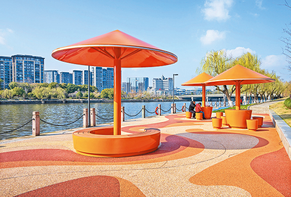 游步道沿途還設(shè)置了一系列豐富多元的景觀節(jié)點(diǎn)。云朵狀的廊架、飄帶造型的坐凳、紫藤搖曳的廊架下精美的雕花坐凳……這些別具匠心的設(shè)計(jì),提供了多樣化的休閑體驗(yàn)空間。無(wú)論是帶孩子游玩的家長(zhǎng),還是約上三五好友散步的市民,都能在這里找到屬于自己的樂(lè)趣和愜意。(龔盈盈)