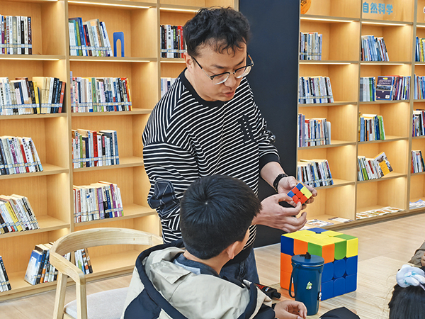 近日,在稠江街道錦都社區(qū)悅讀吧的魔方課堂上,授課老師細致地講解魔方還原技巧,從基礎層到高階公式,每個步驟都分析透徹。孩子們圍坐在一起,邊認真聽講,邊用指尖飛速轉動手中的魔方。