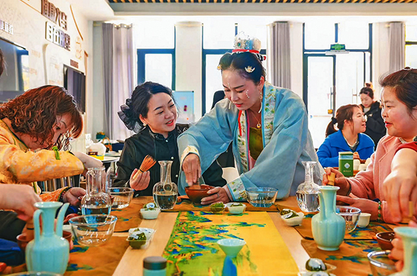 活動現(xiàn)場,宋韻茶香與歡聲笑語交織成趣。在專業(yè)老師的指導(dǎo)下,參與者首先體驗了宋代點茶技藝,親手調(diào)制清香四溢的茶湯,品嘗時令特色清明粿。隨后進行的OH卡牌心理療愈環(huán)節(jié),則引導(dǎo)參與者探索內(nèi)心世界,尋找壓力源頭?!捌綍r忙于工作和家庭,很少有機會靜下心來關(guān)照自己?!贝蟪缮鐓^(qū)人大代表周媛媛表示,這次活動不僅讓他們領(lǐng)略了傳統(tǒng)茶文化的魅力,而且通過專業(yè)引導(dǎo)學(xué)會了自我調(diào)節(jié)的方法。