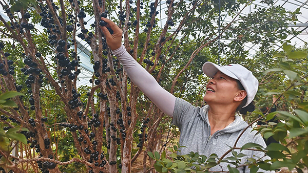 宋小花正在采摘嘉寶果