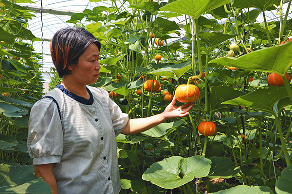 在王綠云的帶領(lǐng)下,記者走進(jìn)農(nóng)場(chǎng)的大棚,仿佛置身于一個(gè)瓜果蔬菜的奇幻世界,各種特色農(nóng)產(chǎn)品琳瑯滿目。只見(jiàn)一排排整齊的瓜蔓順著吊繩奮力向上生長(zhǎng),一個(gè)個(gè)圓潤(rùn)碧綠的貝貝南瓜如同小燈籠般懸掛在空中,散發(fā)著誘人的氣息。工作人員在其間忙碌穿梭,熟練地采摘著成熟的瓜果,整個(gè)基地彌漫著豐收的喜悅?!斑@里與傳統(tǒng)爬式種植方式完全不同,我們充分利用垂直空間,改善了田間的通風(fēng)透光條件。”王綠云說(shuō),這樣既能方便農(nóng)事操作和果實(shí)管理,還能有效減少病蟲(chóng)害的發(fā)生,顯著提升作物產(chǎn)量。