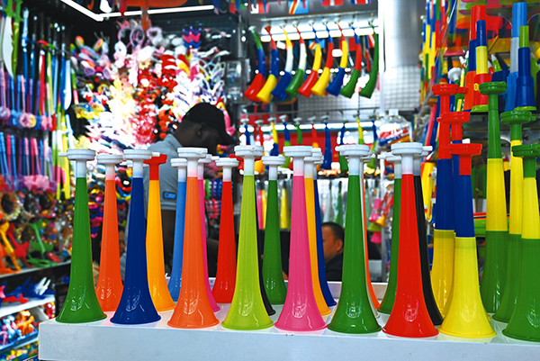 雖然很多市場經(jīng)營戶不是非常懂球,但一到大型體育賽事,都成了體育迷、足球迷、籃球迷、網(wǎng)球迷……因為不管什么比賽,氛圍少不了“義烏制造”,助威少不了“義烏吶喊”,禮物少不了義烏市場,贏球少不了義烏獎牌——總之,賽場需要的,這里總能找到。