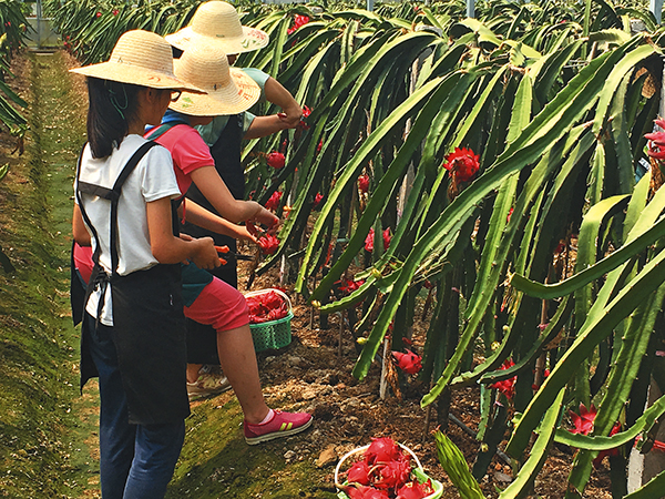 今年截至目前,農(nóng)場(chǎng)已接待上百名采摘游客,大多是“老客”。王忠根介紹,這些火龍果基本上靠游客上門(mén)采摘,主打就是新鮮和體驗(yàn)。