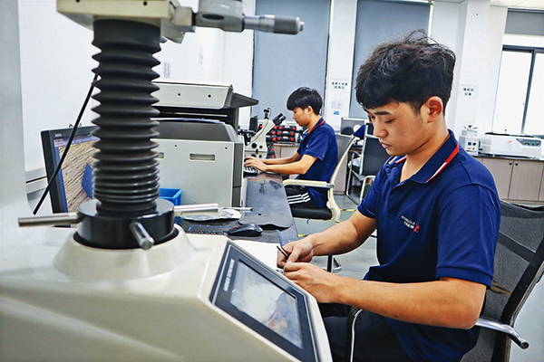 8月1日,佛堂鎮(zhèn)的浙江芒銳機(jī)械設(shè)備有限公司實(shí)驗(yàn)室里,研發(fā)人員正手持兩片拇指大小的“生克片”樣片,在高倍顯微鏡下細(xì)致觀察其結(jié)構(gòu)特性?!斑@兩個樣本,是我們經(jīng)過多輪試驗(yàn)取得的關(guān)鍵成果?!毖邪l(fā)人員介紹,生克片作為無縫內(nèi)衣機(jī)、手套機(jī)、襪機(jī)等針織設(shè)備的核心部件,直接影響紗線編織“從線到體”的實(shí)現(xiàn)。長期以來,該關(guān)鍵配件依賴進(jìn)口,如今芒銳機(jī)械正逐步推進(jìn)其國產(chǎn)替代。