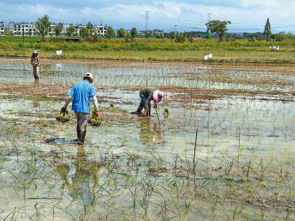 結(jié)束后,我的雙腿幾乎邁不開,連走路都感覺(jué)十分酸痛。半天下來(lái),算是讓我深深體驗(yàn)到“粒粒皆辛苦”了。周師傅說(shuō),現(xiàn)在人工插秧已經(jīng)逐漸減少,只有一些機(jī)械不便的山垅田或者要求比較高的試驗(yàn)田還用到人工,但作為一項(xiàng)技能,種田這門傳統(tǒng)農(nóng)藝不能丟,將來(lái)也是一種寶貴的農(nóng)耕文化。(陳洋波)