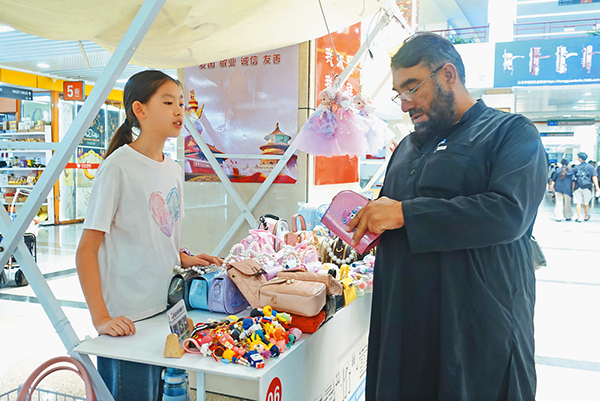 下午客流高峰時,13歲的廖羽晨迎來“外國面孔”。盡管英語尚顯生澀,但她鼓起勇氣,拿起一個掛飾:“Thirty yuan…and this doll,three!”一筆交易完成,她輕聲感慨:“做生意很辛苦,我還要多向爸媽學(xué),希望一年比一年強(qiáng)?!毖哉Z間,承繼的愿望樸素而堅定。