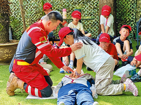 孩子們學(xué)習(xí)防溺水急救技能