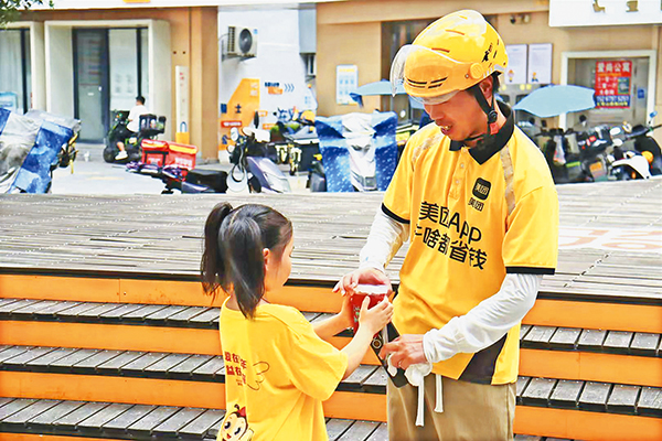 有情有義的義烏,有心有愛的童年。7月24日下午,稠城街道義駕山社區(qū)暑氣灼人。一輛輛外賣電瓶車在“義騎驛站”前短暫停靠。小學(xué)二年級學(xué)生王汐言踮著腳,將冰鎮(zhèn)楊梅汁遞到一位滿額汗珠的騎手手中:“叔叔辛苦啦!”她的小姨金牡丹是本次“夏日送清涼”活動的組織者:“我?guī)齾⒓舆^十幾次公益活動,現(xiàn)在她看到環(huán)衛(wèi)工人,知道主動送水了?!?/div>