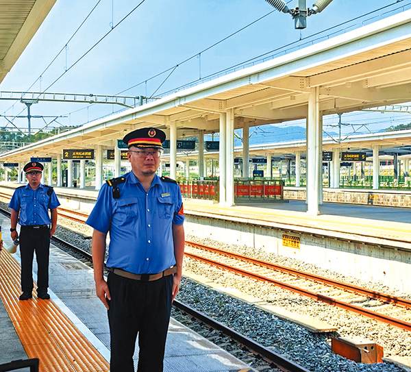 小小的站臺(tái),濃縮著百態(tài)人生??瓦\(yùn)員的崗位,守的不只是一趟趟列車的準(zhǔn)點(diǎn),也是千萬個(gè)家庭的平安。那些被汗水浸濕的制服,被磨亮的站臺(tái)地標(biāo),還有被反復(fù)叮囑的安全事項(xiàng),都是他們?yōu)椤霸姾瓦h(yuǎn)方”筑牢的基石。(陳張彪)