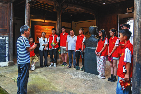 “抗戰(zhàn)爆發(fā)前,馮雪峰的主要精力放在上海地下黨的革命活動(dòng)中,無意間加入了長(zhǎng)征隊(duì)伍?!痹谏駢羼T雪峰故居內(nèi),面對(duì)一群從貴州來義烏研學(xué)的孩子,馮雪峰的侄子馮潮忠不厭其煩地講述著這些他講了無數(shù)遍的故事。