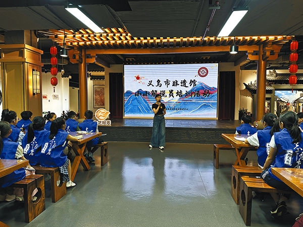 “此次公益招募活動推出后,受到許多家長、青少年的關(guān)注。本期培訓(xùn)班成員平均年齡為12歲?!笔蟹沁z館相關(guān)負責人表示,非遺館通過創(chuàng)新打造沉浸式文化育人平臺,讓“小小解說員”講解義烏的歷史人文、非遺故事等內(nèi)容,用童聲童語架起傳統(tǒng)與現(xiàn)代的橋梁,增強我市優(yōu)秀傳統(tǒng)文化的感染力、普及度。(傅柏琳)